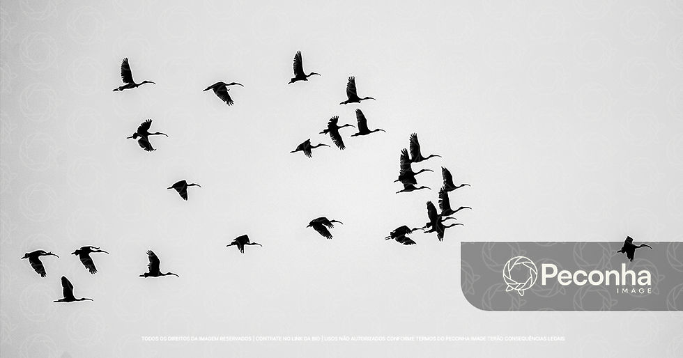 Silhuetas de um grupo de aves voando